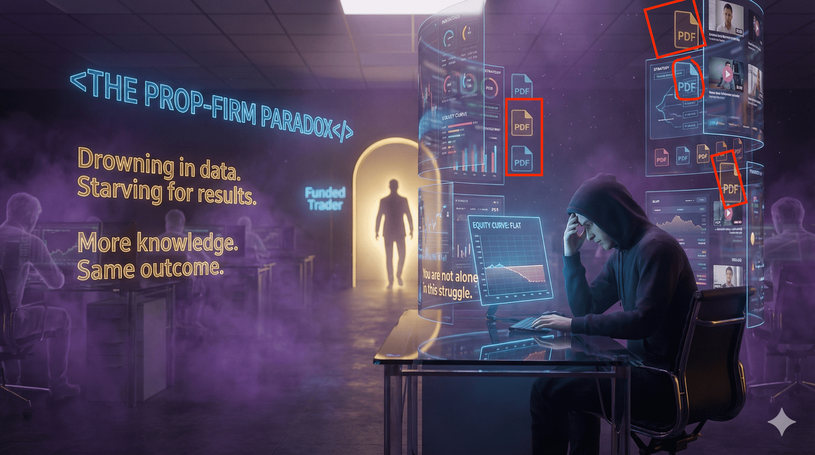 You are trapped in a loop of buying prop-firm challenges, coming incredibly close, and then failing due to a psychological slip-up. Your confidence is shattered, and you start to question if you'll ever break through.